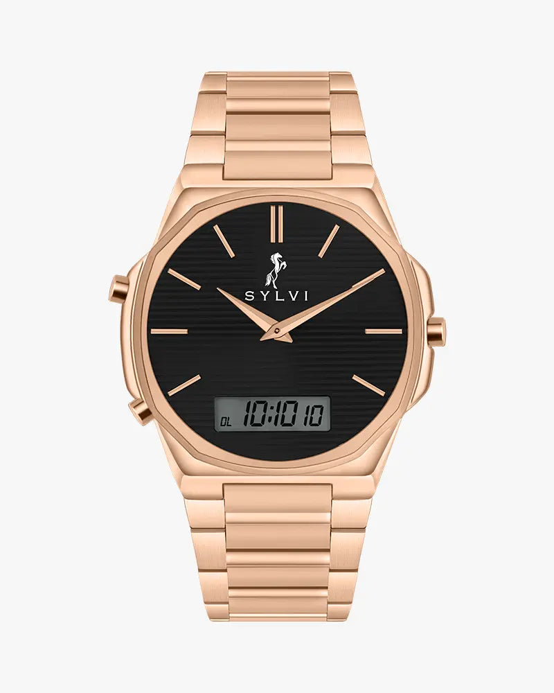 The Blade Dual Time is designed in a way that it appeals to men whose lives are dictated by accuracy and presence. It balances the classic nature of the analog watch production with the functionality of a modern digital interface, thus, it is a sophisticated product in the era of Analog digital watches.