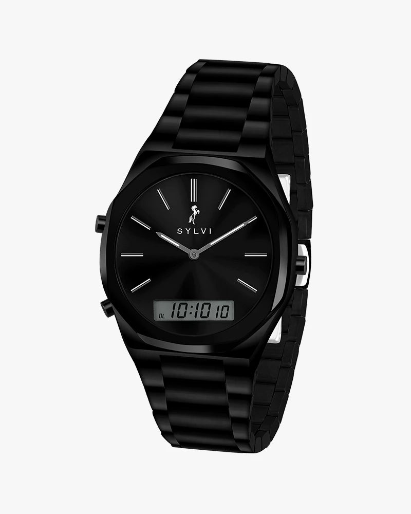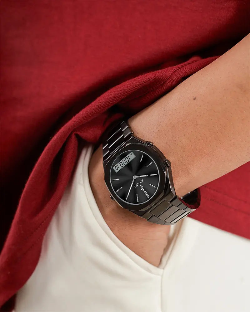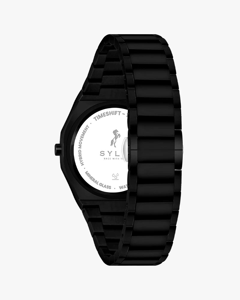 The TimeShift All Black Steel establishes a high-concept way of approaching modern life, crafted for those who move with purpose and confidence. The smooth steel finish and black deep dial of the watch gives it an effective, continuous image that is a distinctive product image in the world of watches today.