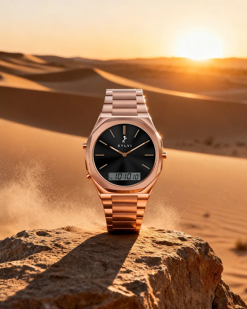 This man watch silver alternative in rose gold tone brings versatility across formal settings, travel, and everyday styling.