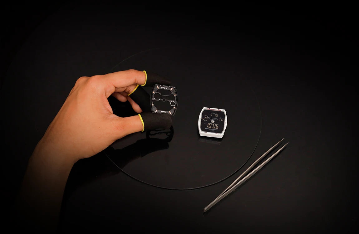 The black dial is readable, resulting in smooth operation of the Digital display and the analog hands. The design will make the information readable and still appear clean and technical.