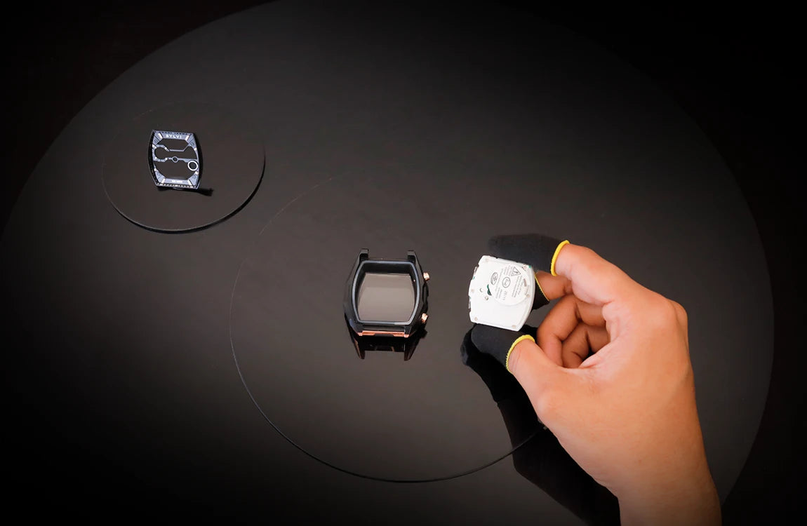 The rose gold case provides the watch with a premium and modern identity image without losing a rabid masculine look. Its square design adds a soft touch of the modern and gives it a well-balanced, comfortable fit on the wrist.