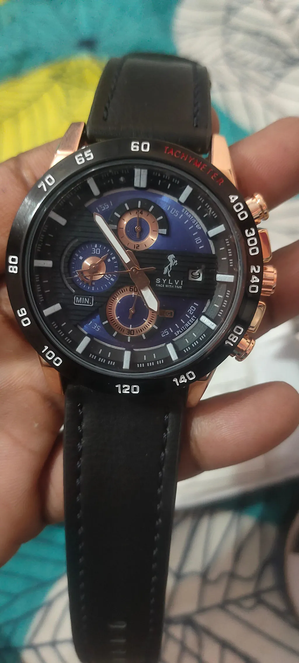 - Dial: The blue dial, highlighted with rosegold accents, offers a refined and modern aesthetic, ensuring clear readability.