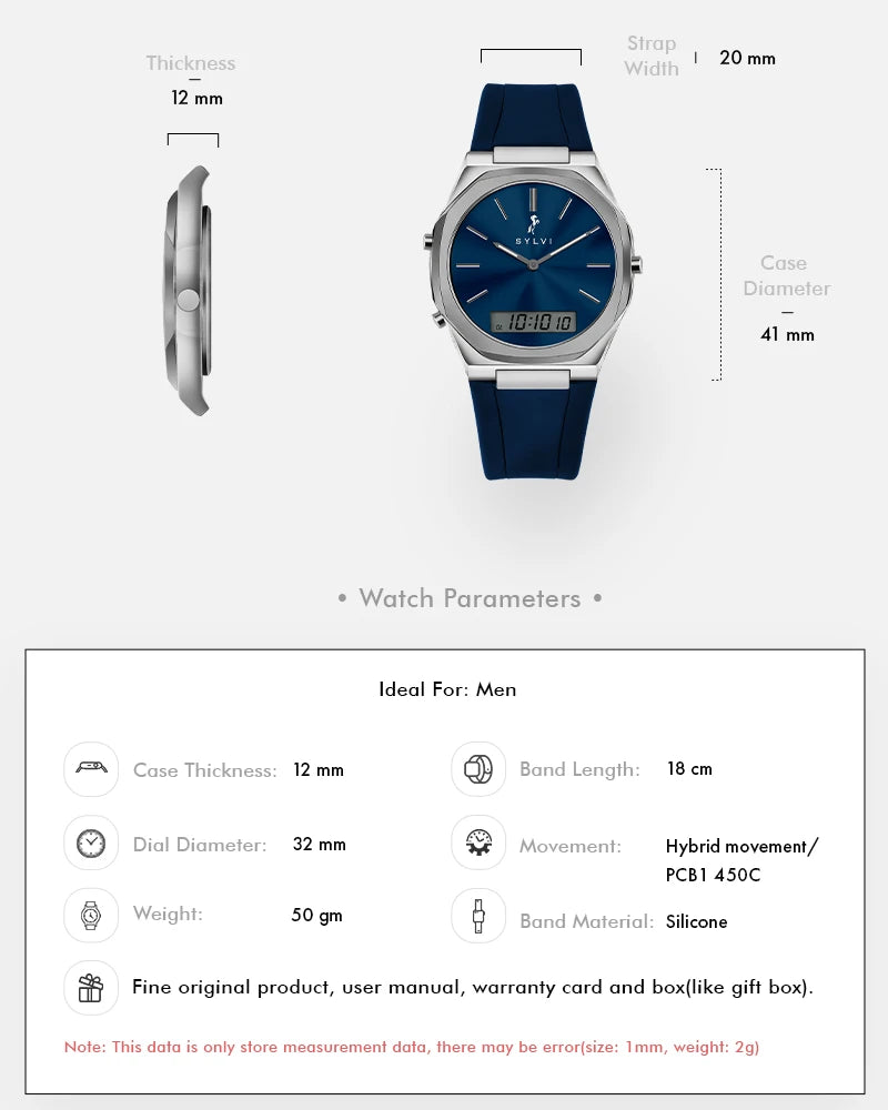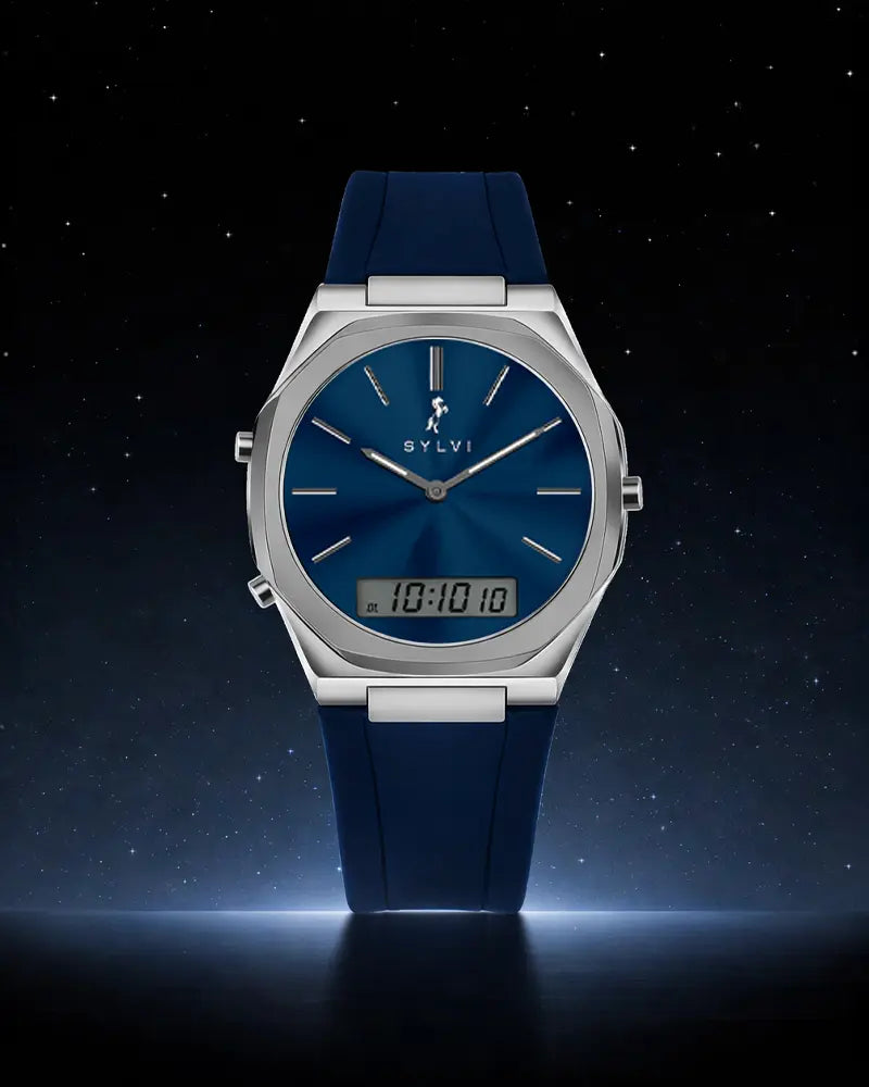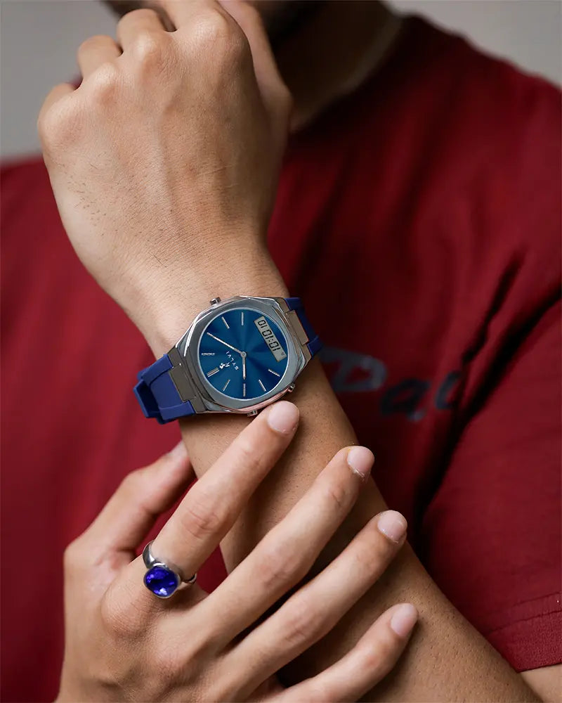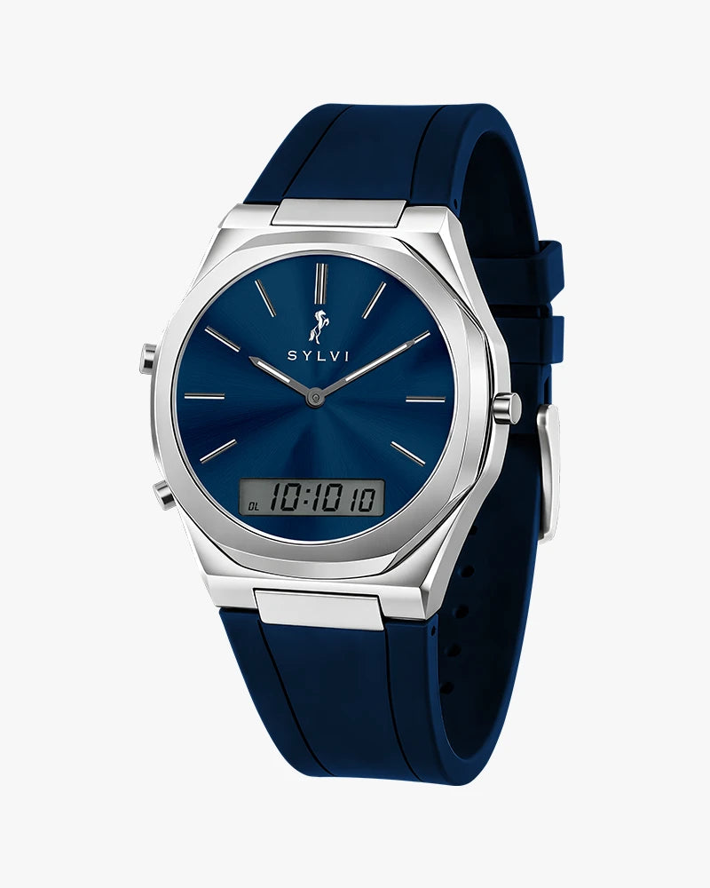 The TimeShift Blue Silver Silicone is not a watch but an elevated manifestation of authority, tranquillity, and daily functions. Developed by people who like details and functionality, the TimeShift Analog Digital Watch is a fusion between classic, elegant, and digital performances.