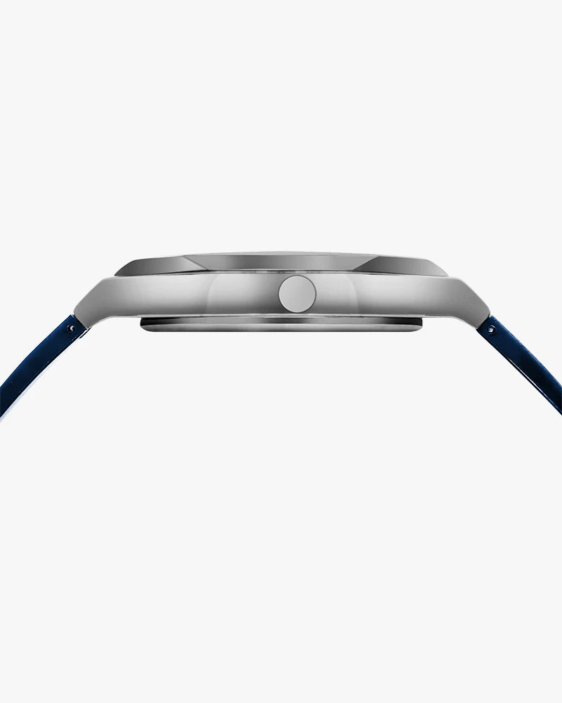 The dark blue dial establishes a powerful image for the watch – clean, modern and sure. The dial has a gentle radial texture which provides a depth without making it cloudy.