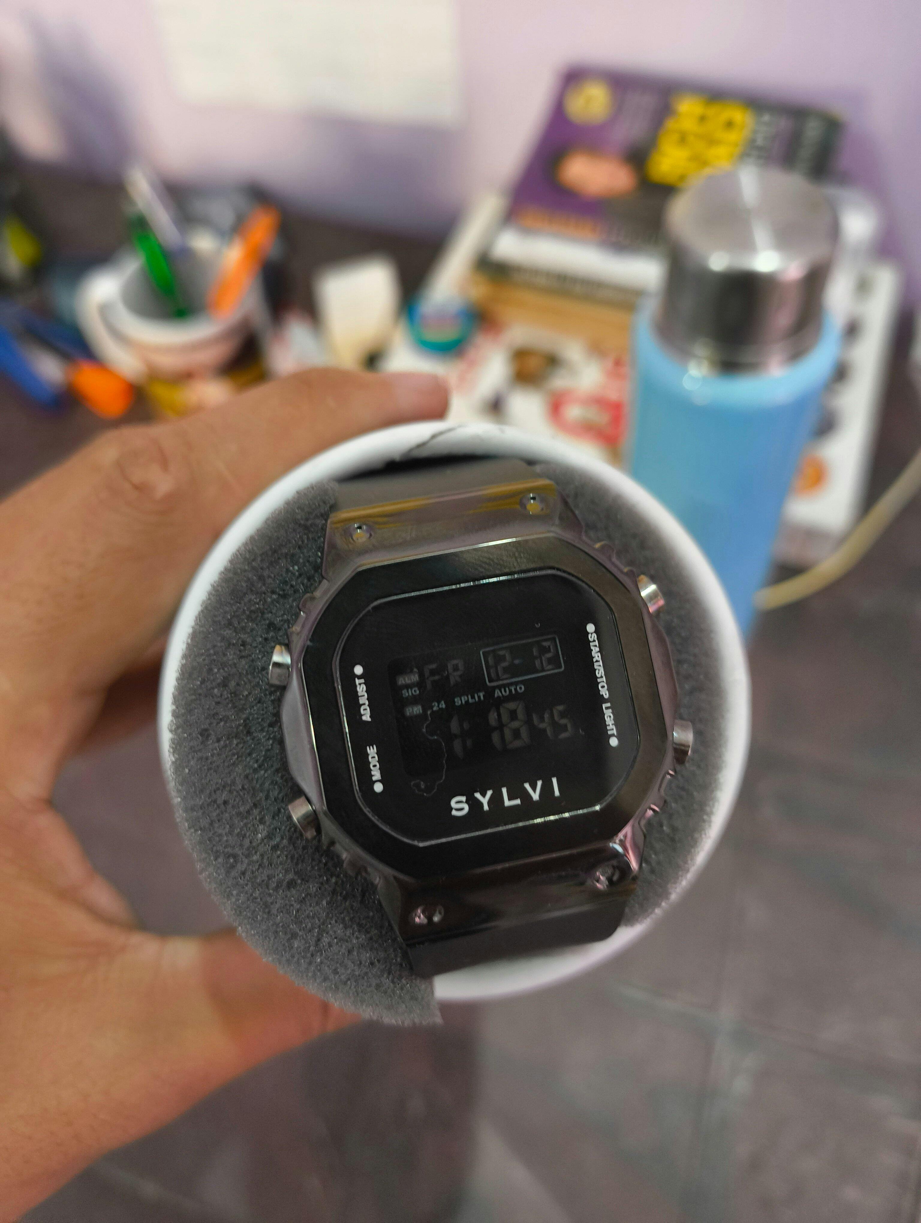 It has 3 ATM water protection and can easily handle a daily task and light splashes. The Sylvi Bolt Black weighing only 50 grams is as light as a feather on the wrist but appears to be a strong-looking piece.