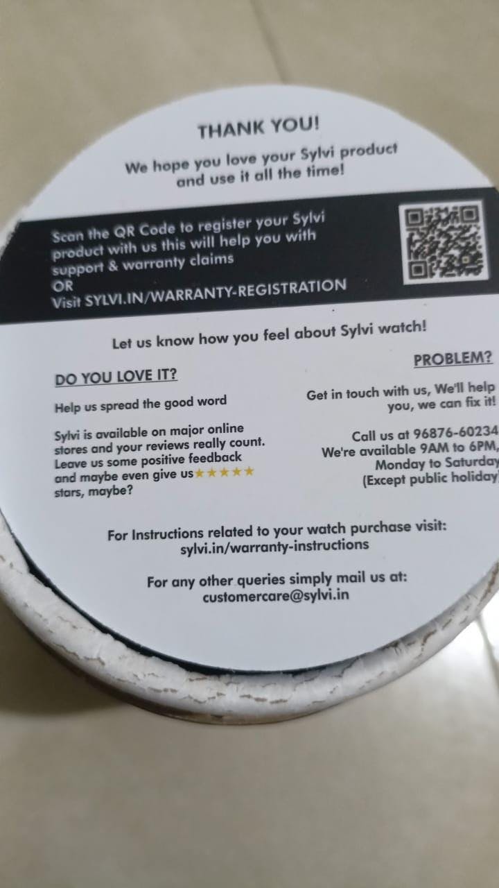 Sylvi watches come with 1-Year Warranty* [6-month Manufacturer Warranty + 6-month Free Extended Warranty on registration.