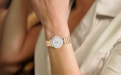 The Riva Pearl White Roseluxe Link isn't just a Sylvi watch for women — it's a statement piece, bringing together class and functionality for the woman who demands nothing but the best.