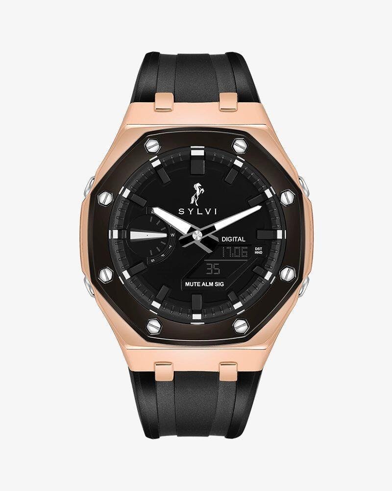 Dive into timeless elegance with our Urbane Rosegold Black Watch. A sleek black dial meets the gentle embrace of a rosegold case, all anchored by a matching rosegold steel strap. Its octagonal bezel adds a dash of modern charm, while the simple analog display ensures you're always on time. Plus, with its handy date display, you're never out of sync. Fasten it securely with our signature fold-over clasp, making every wrist feel just right. It's not just a watch; it's a statement.